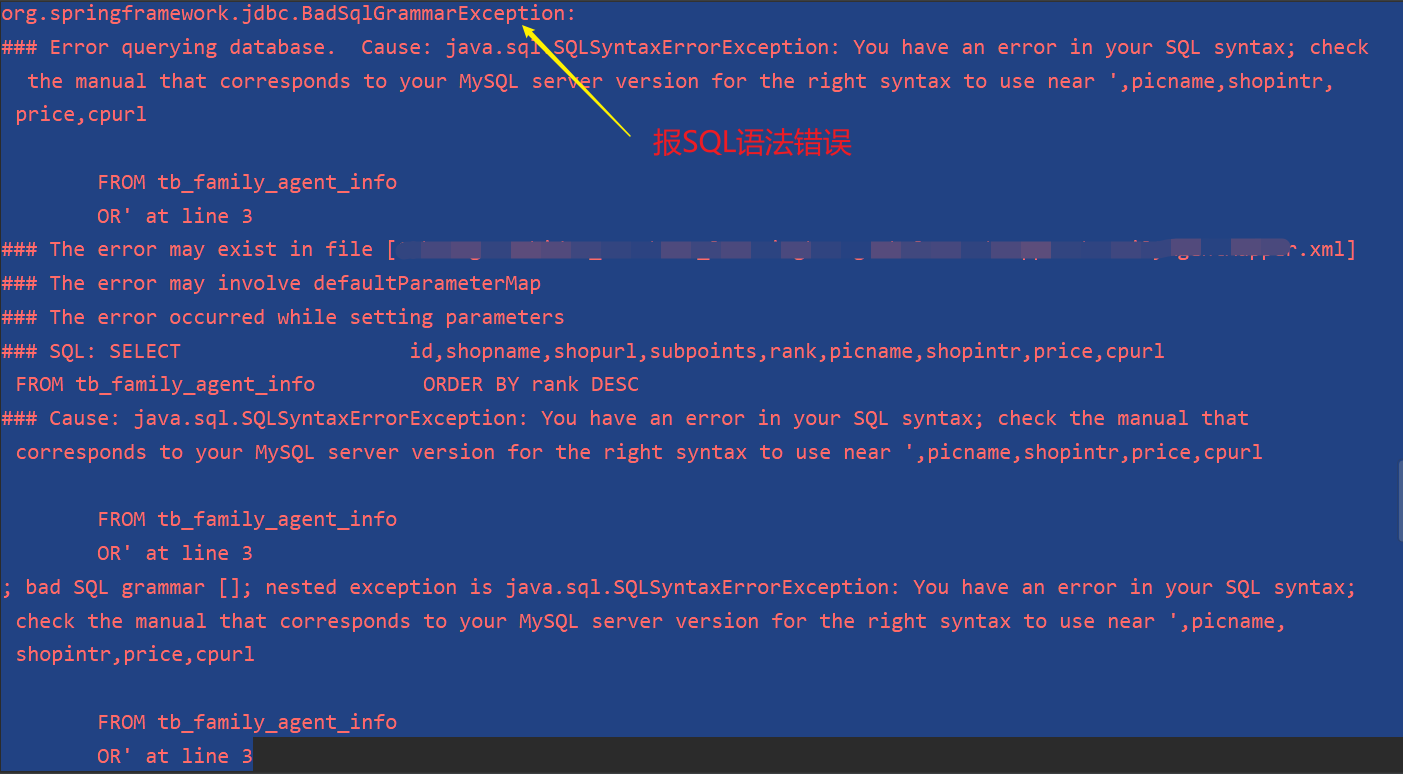 1 | org.springframework.jdbc.BadSqlGrammarException: |
